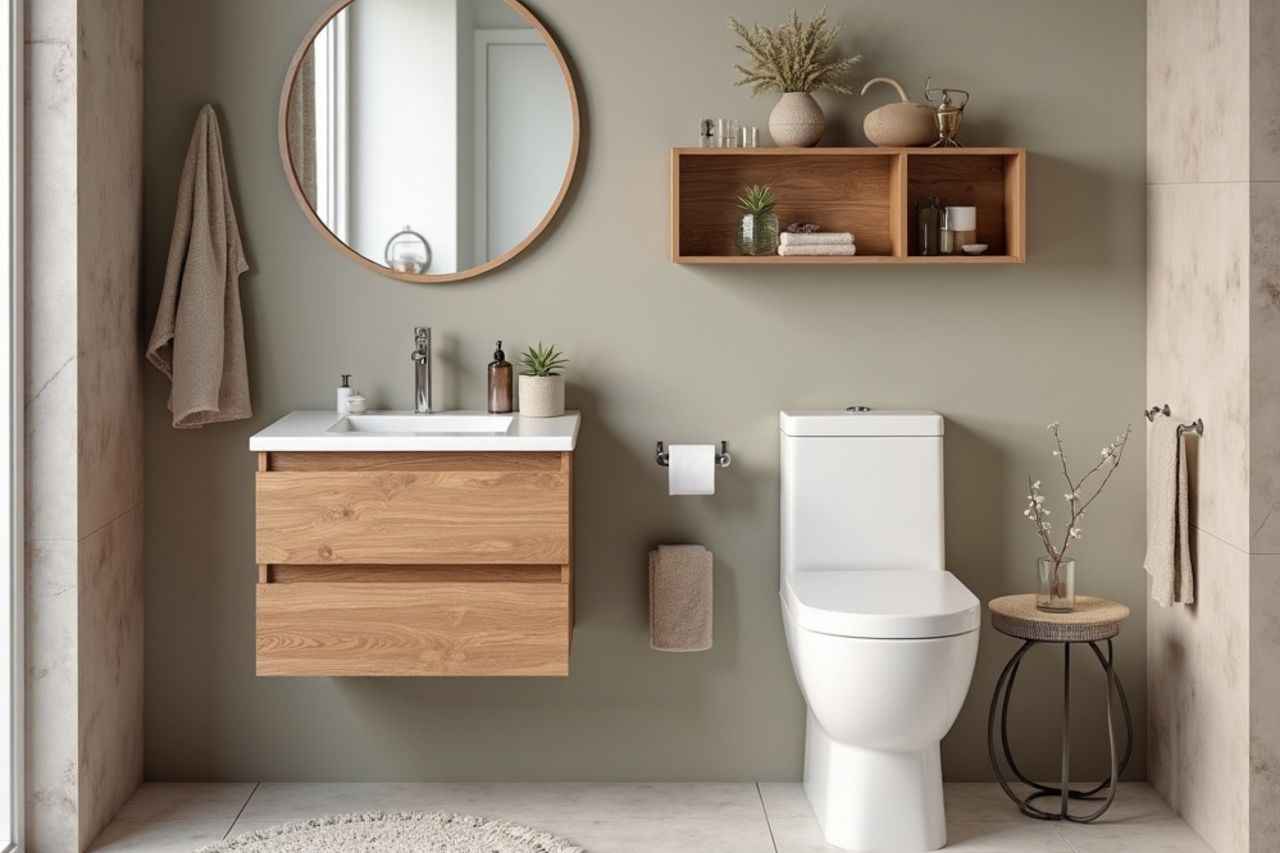 L’ajout d’étagères en bois ou en métal peut également compléter votre décoration tout en offrant un espace de rangement supplémentaire. Pensez à intégrer des plantes vertes pour apporter une touche naturelle et vivante à vos toilettes.